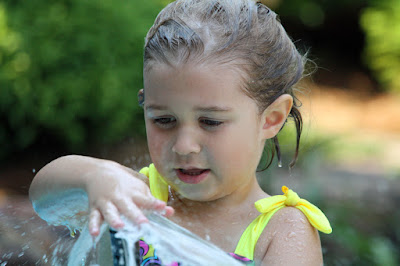 Our five-year-old granddaughter Avery has been staying with us for several days, and a couple of days ago, with the temperatures in the 90s and the Mississippi heat index hitting 108, Avery's thoughts turned to her little plastic swimming pool that she's used at our house for the past couple of summers. After listening for several hours to her pleading (as only a five-year-old can plead), to pleeeeeease get her pool out, she and I went to the attic (which probably had a heat index of 208!)and, after searching for a few minutes, finally found the pool. That was the easy part.