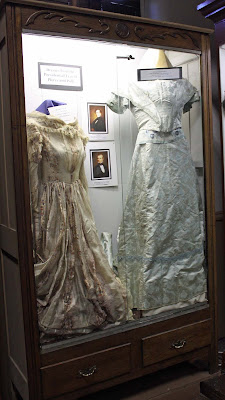 Today, our tour of the Old Court Museum in Vicksburg, begins by going up this impressive iron staircase, which leads from the first floor to the second floor. I can't just skip from the first floor to the second floor without pointing out the beautiful ironwork of the staircase itself. The stairs, along with the other ornamental iron work in the building, were made by T. F. Baker Iron Company of Cincinnati, Ohio, and brought by steamboat down the Mississippi River in the late 1850's. At the top of the stairs is a room dedicated to the fashions that were popular around the mid-1800s. They range from plain, everyday clothes to fancy wedding attire. My favorites in this room were the "baby," baby carriage, and christening dress ... I couldn't wait to see the courtroom, and I wasn't disappointed. I loved everything about it, but was fascinated with the ornate iron dais. The judge presided from the dais, which was also made by the Baker Iron Company, in 1859. What a work of art! I love its graceful curves and intricate "lacy" trim at the bottom (you can click on the pictures to enlarge them if you'd like to get a closer look). (I took this picture from behind the dais) Attorneys and clients sat at this long table ... Witnesses sat in a chair elevated by a platform that could be easily moved. There was not a permanent or stationary box for the witness. I missed capturing one very important feature of the courtroom the jury chairs! They are beautiful swivel chairs and were installed about 1890. I guess I was too busy taking pictures of the bust of General Robert E. Lee ... January 19, 1807 - October13, 1870 Lieutenant Colonel, United States Army General in Chief of the Armies of President, Washington College If you look closely, you can see the jury chairs in this picture ... There are two rooms off of the courtroom one is the Burwell Vick Memorial Room. Burwell Vick, was a brother of Newit Vick, who founded Vicksburg. The other room is the Jefferson Davis Room, and, obviously, features memorabilia about the President of the Confederacy. Before I leave the courtroom, I want to share pictures of a couple of the fireplaces. This one is in the Vick Room, and I especially like the tile surround and hearth.