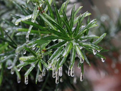 And these icicles clinging to a Japanese Yew in our courtyard ...