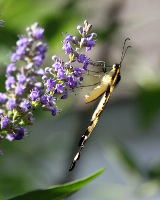 He seemed to be perfectly happy, flitting from one flower to another, as if he couldn't get enough of the nectar. He reminded me of hummingbirds this time of year when they're getting ready for their long journey south.